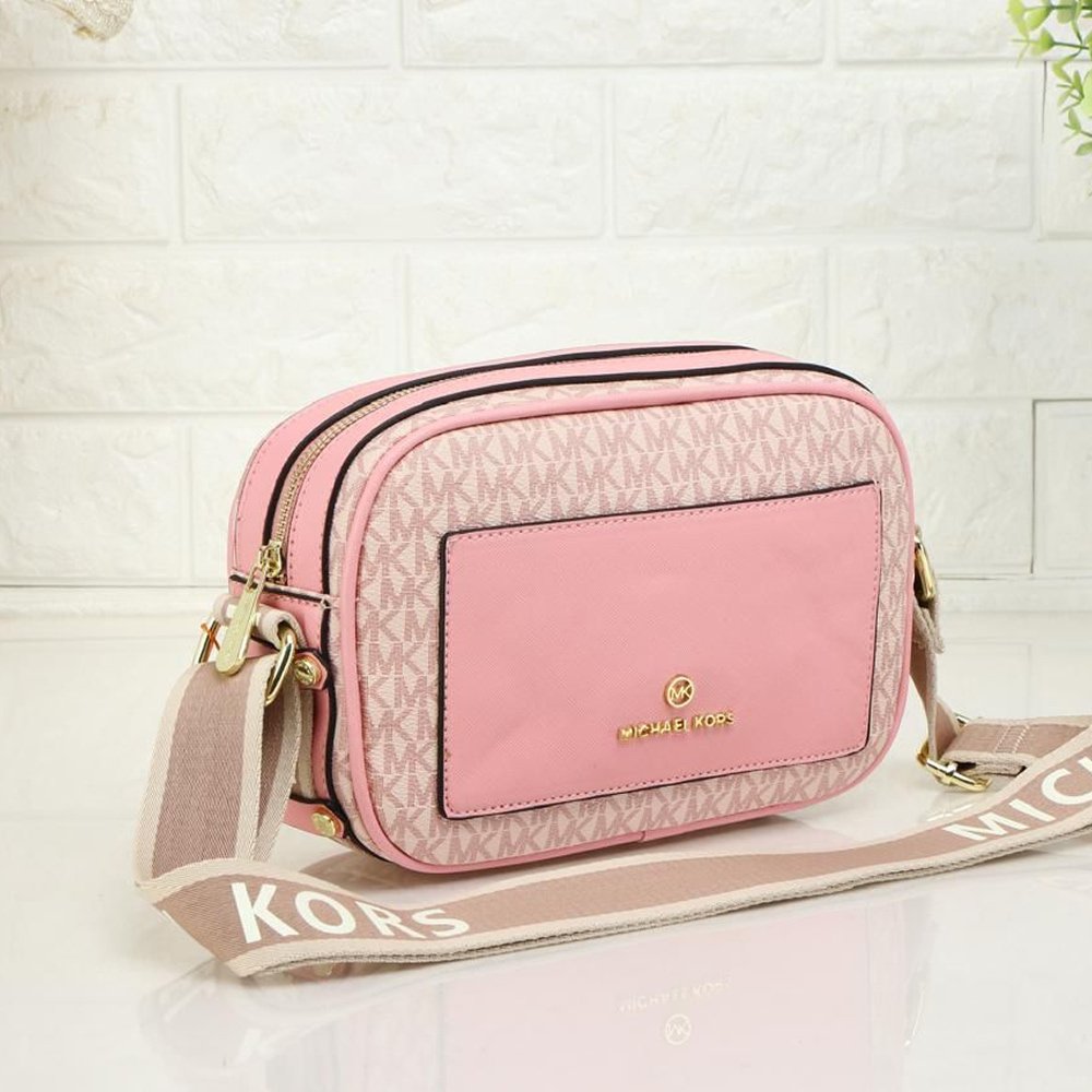 • Color: Light pink front panel, blush MK monogram body